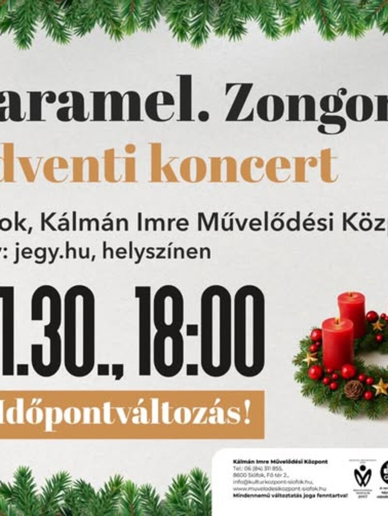 A karácsony közeledtével különleges zenei élményre hívjuk Önt és szeretteit: Caramel adventi hangulatú koncertjét élvezhetik 2025. november 30-án, 18:00 órától a siófoki Kálmán Imre Művelődési Központban.