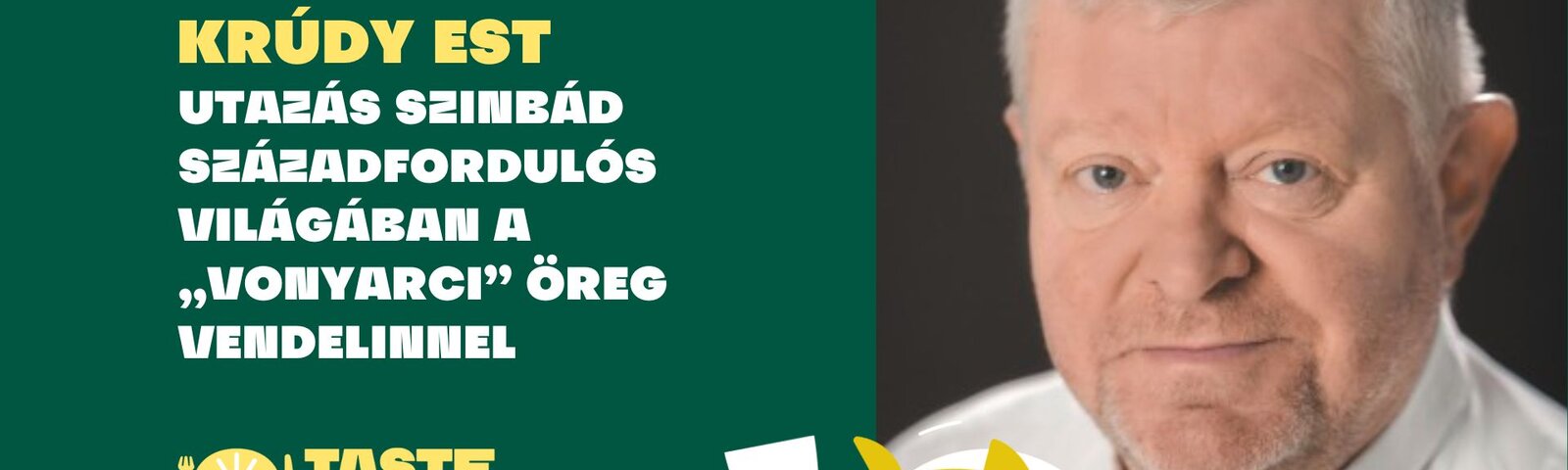Krúdy Gyula írásai nemcsak történetek – ízek, illatok és hangulatok is. A lassú élet, a terített asztal, a jó bor, a beszélgetés és az emlékezés örömei. Ezen az estén egy különleges, több fogásból álló menüsorral idézzük meg Szindbád álmodozó, nosztalgikus világát: Balaton, melegség és mély, gazdag ízek.