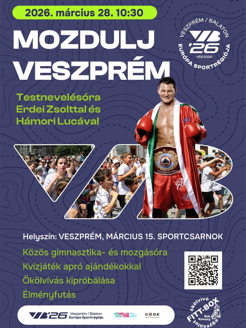A „Mozdulj Veszprém” program egy különleges, minden korosztály számára nyitott közösségi mozgásélmény, amely 2026. március 28-án kerül megrendezésre Veszprémben, a Március 15. Sportcsarnokban. A rendezvény középpontjában a mozgás szeretete, az egészséges életmód népszerűsítése és a közösségi élmény áll, hiszen a cél, hogy minél többen együtt, közösen tapasztalják meg a mozgás örömét.