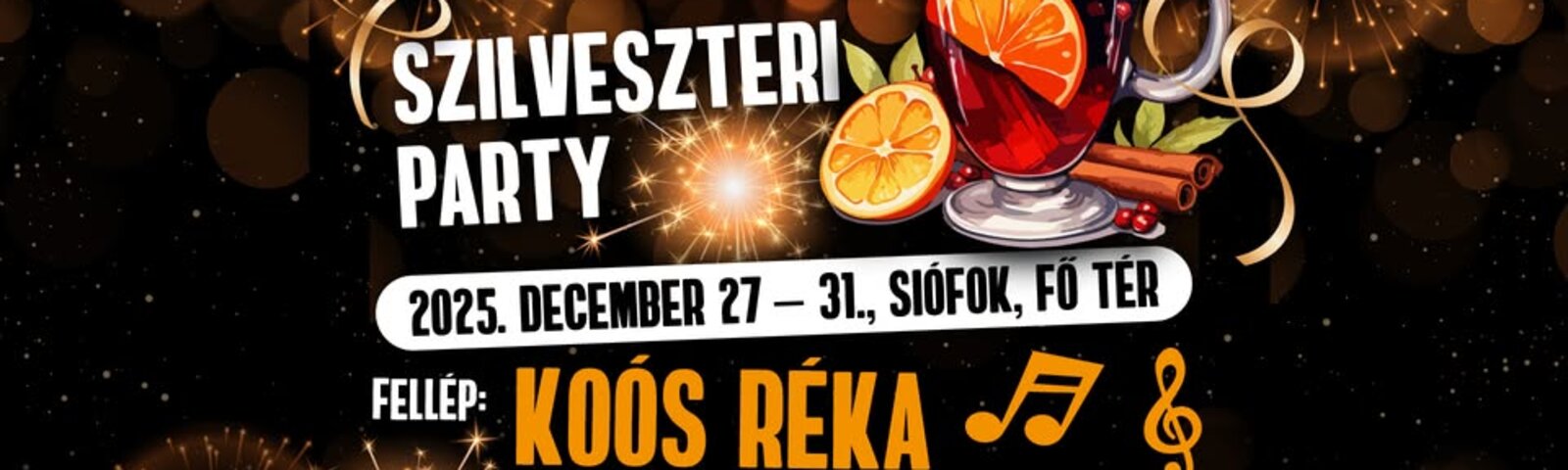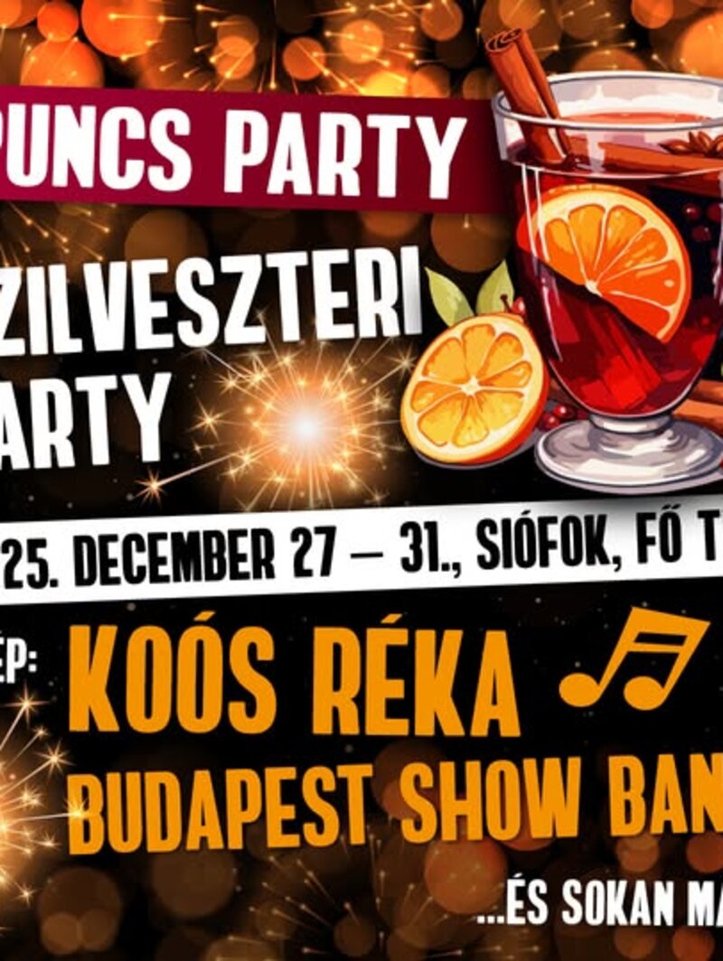 BÚÉK Siófok - Szilveszteri Party! Idén is zenei programokkal és finom forró italokkal vár az Évzáró Puncs Party és Szilveszter Siófokon a Fő téren, a Víztorony mellett. December 27-étől minden este zenés programok, Szilveszterkor pedig ingyenes koncertek gondoskodnak a felhőtlen szórakozásról. Ünnepelj az év legutolsó és legnagyobb bulijában Siófokon, a Fő téren december 27 és január 1. között!