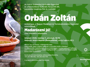 „Madarászni jó!” - interaktív előadás előadás, ismeretterjesztés, szakkiállítások, bemutatók Balatonfüred, Arácsi Népház és Kiállítóház Az állatszeretők, madárbarátok számos érdekességet, hasznos tudnivalót hallhatnak ezen a szombat délutánon a madármegfigyelésről, a madárbarát kert létrehozásáról, kedves tollas barátainkról!